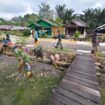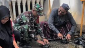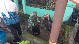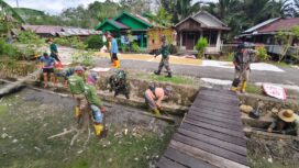 Gotong Royong TNI dan Warga Wujudkan Lingkungan Bersih di Banua Lawas