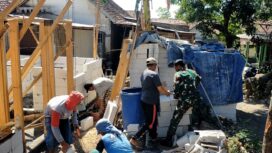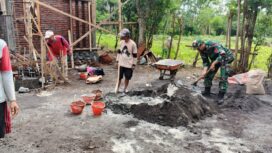 Bersama Warga Margoagung, TNI Koramil Sumberrejo Bojonegoro Cor Pondasi Musholla