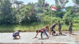 Satgas TMMD ke-126 Semangat Gotong Royong Lanjutkan Pengecoran Jalan di Kampung Babak