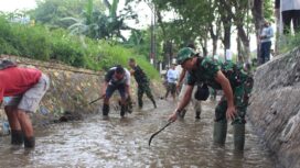 Kodim 1002/HST Bersihkan Sungai Lunjuk Sambut HUT ke-67 Kodam VI/Mulawarman