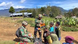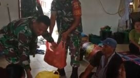 Satgas Yonif 126/Kala Cakti Pos Kombut Berbagi Sembako dan Hangatkan Suasana Lewat Makan Bakso Bersama Warga