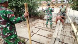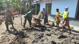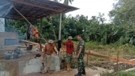 TNI Peduli, Babinsa Bantu Plester Dinding Rumah Warga