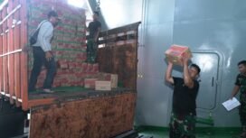 Satgas Yonif 715/Mtl Bagikan Sembako Memperkuat Kepedulian Terhadap Sesama Diperbatasan