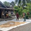Wujud Kemanunggalan TNI-Rakyat, Babinsa BAS Bantu Petani Jemur Padi