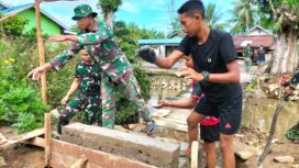 TNI Bersama Rakyat Angkut Material, Jembatan Garuda Segera Terwujud