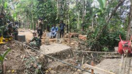 Personel Kodim 1505/Tidore Bersama Warga Lanjutkan Pengecoran Pondasi Jembatan Garuda