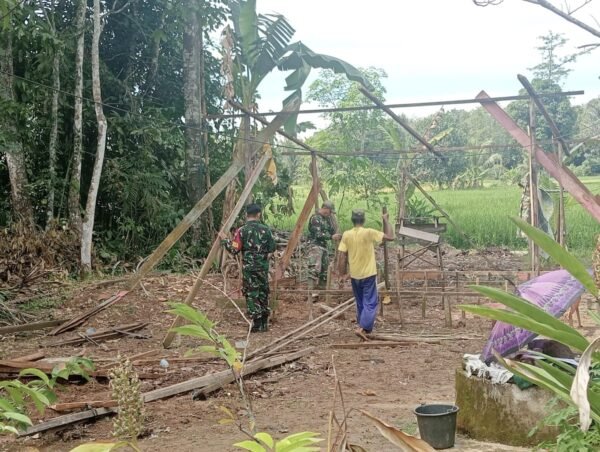 Babinsa Hadir di Tengah Masyarakat, Gotong Royong Bangun Rumah Warga Andang