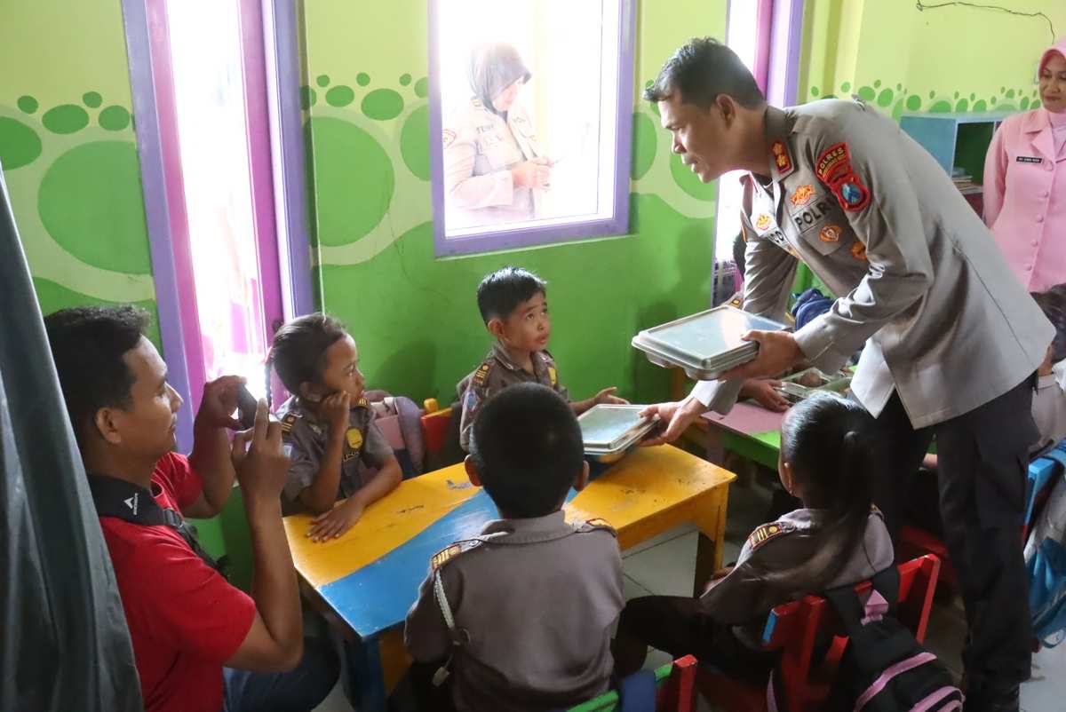 Usai melakukan pengecekan dapur SPPG, Kapolres Probolinggo Kota bersama rombongan melanjutkan kunjungan ke salah satu sekolah penerima manfaat, yakni TK Kemala Bhayangkari 20. Di lokasi tersebut, Kapolres secara simbolis menyerahkan Makan Bergizi Gratis (MBG) sebanyak 86 porsi kepada para siswa.
