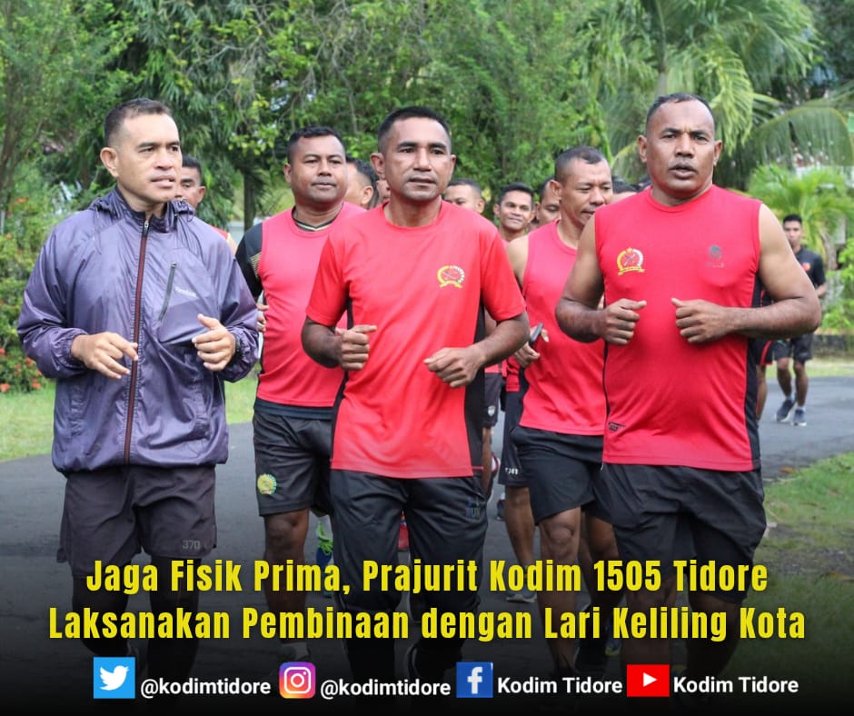 Jaga Fisik Prima, Prajurit Kodim 1505 Tidore Laksanakan Pembinaan dengan Lari Keliling Kota