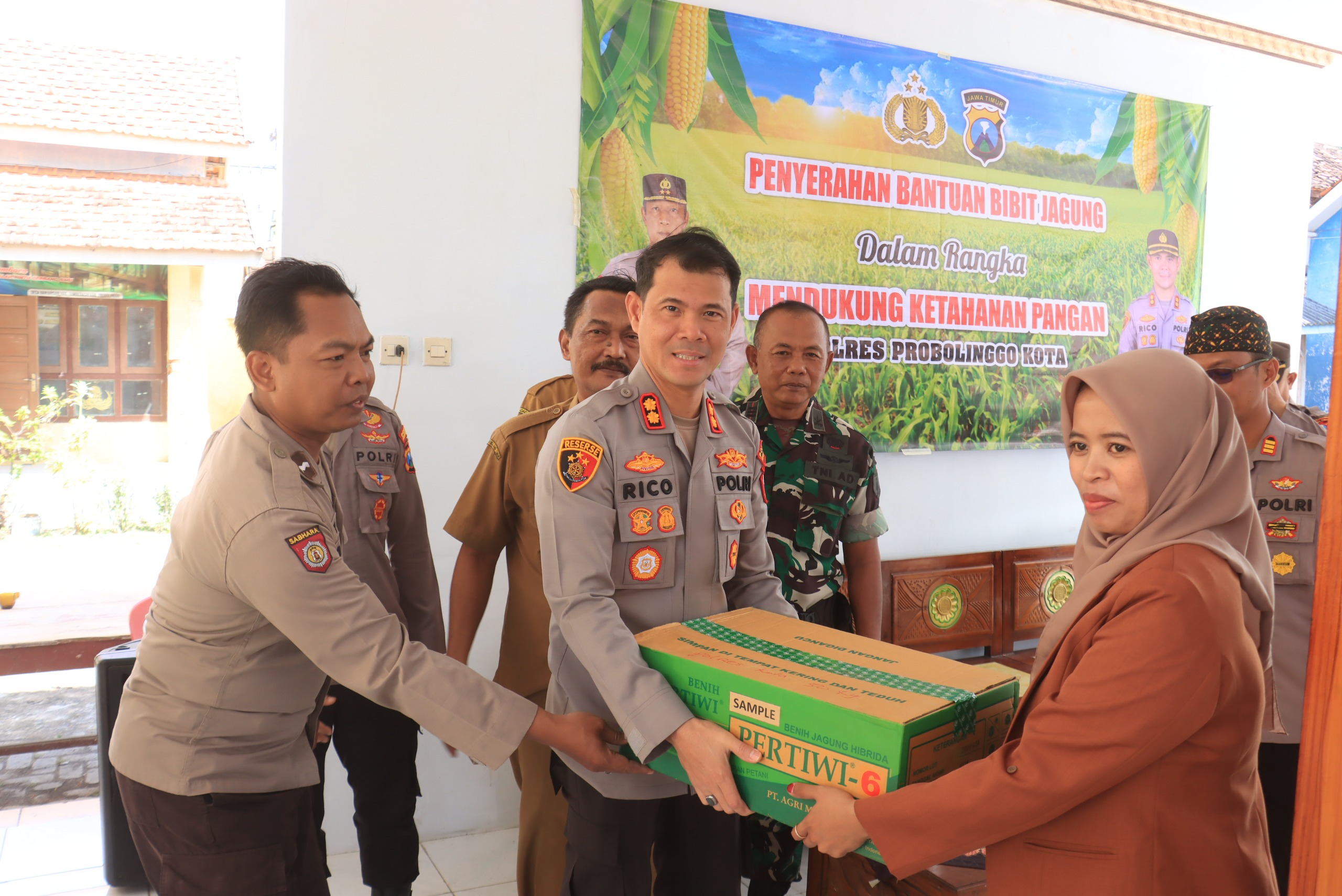 Bantuan tersebut diserahkan langsung oleh Kapolres Probolinggo Kota, AKBP Rico Yumasri S.I.K., M.I.K., kepada perwakilan kelompok tani dan pondok pesantren. Setiap desa menerima sebanyak 25 kilogram bibit jagung yang diharapkan bisa segera ditanam masyarakat untuk memperkuat ketahanan pangan lokal.
