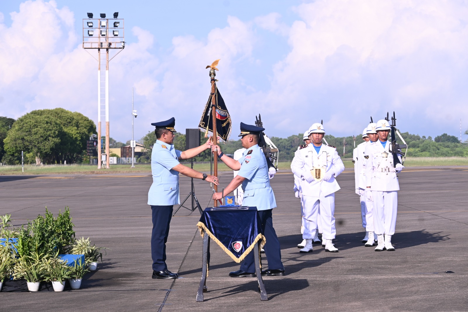 Makassar – Tongkat kepemimpinan Komandan Skadron Udara 11, diserahterimakan dari Letkol Pnb Andry “Stellar” Libarsyah Agung N., M.M.S. kepada Letkol Pnb Dika “Kingkong” Mahendra Puji Kusuma, dipimpin langsung oleh Komandan Lanud Sultan Hasanuddin, Marsekal Pertama TNI Arifaini Nur Dwiyanto, M.Han., dalam upacara serah terima jabatan yang berlangsung di Apron Skadron Udara 11 Lanud Sultan Hasanuddin, Makassar, Kamis (23/10/2025).