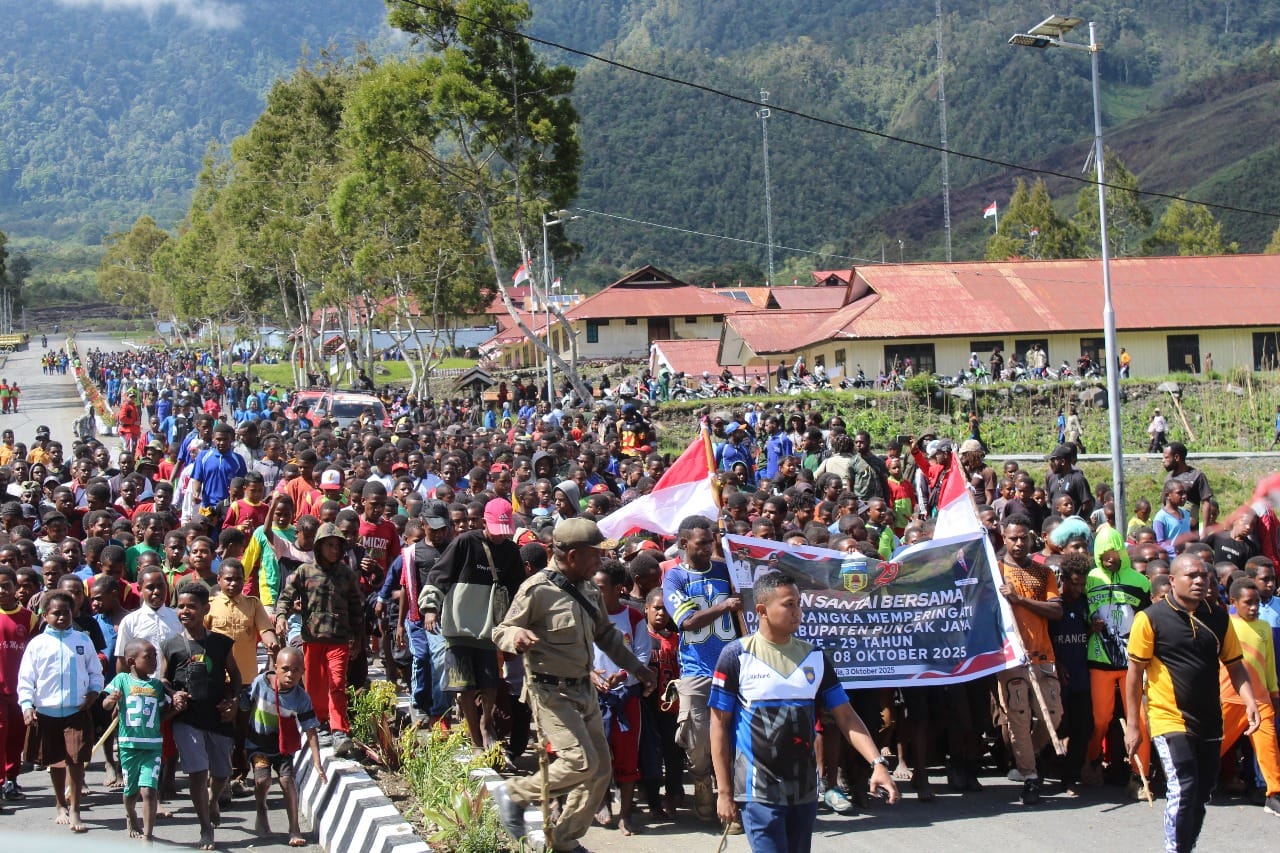 Puncak Jaya – Dalam rangka memeriahkan Hari Ulang Kab Puncak Jaya yang ke-29, Kodim 1714/Puncak Jaya, beserta Ibu-ibu Persit, mengikuti kegiatan jalan santai Bersama yang Diselenggarakan Pemda kabupaten Puncak Jaya, Jumat (03/10/2025).