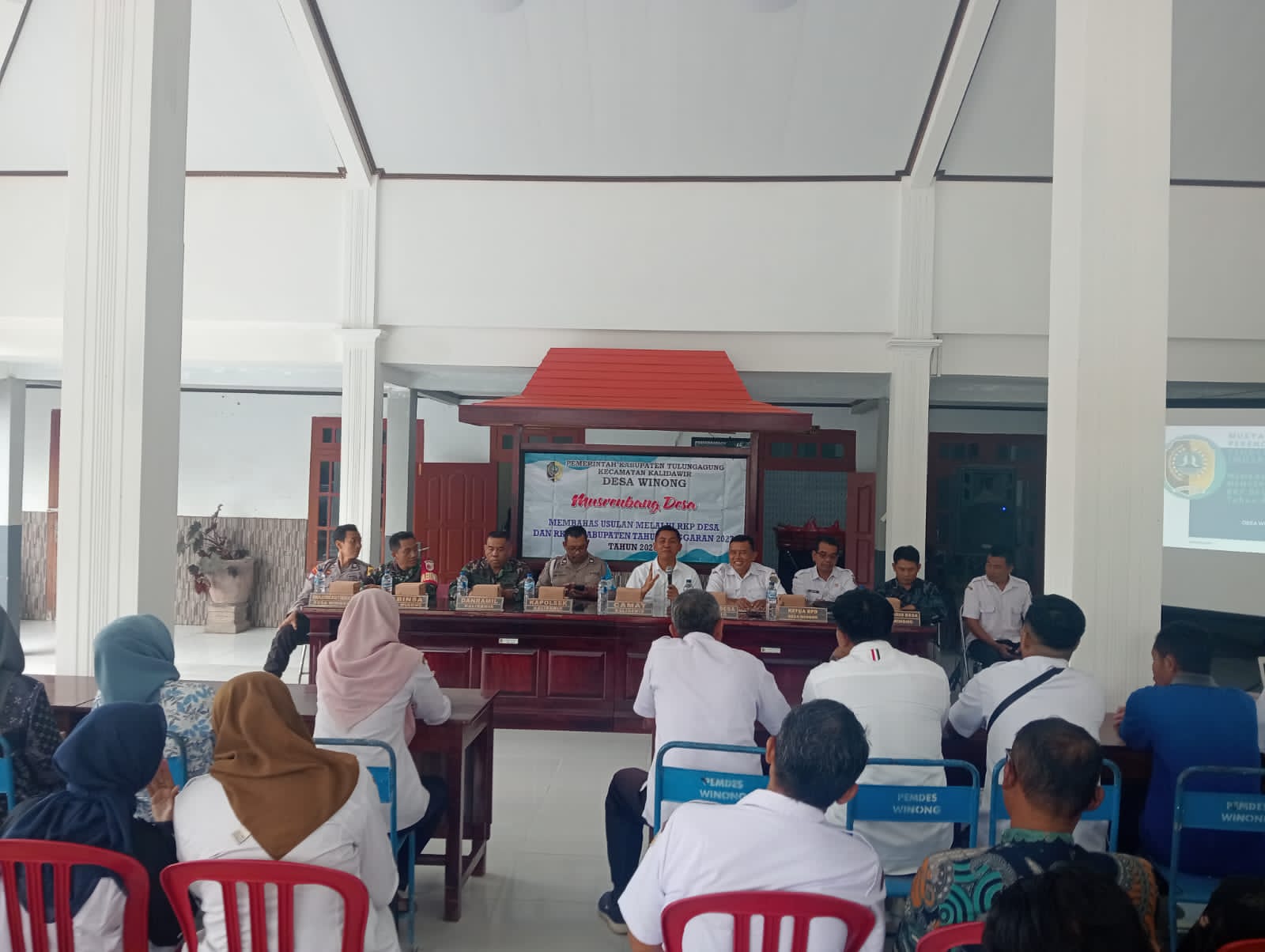 Kepala Desa Winong, Sutejo, dalam sambutannya menyampaikan bahwa Musrenbangdes merupakan forum penting untuk menentukan arah pembangunan desa agar tepat sasaran dan sesuai kebutuhan masyarakat.