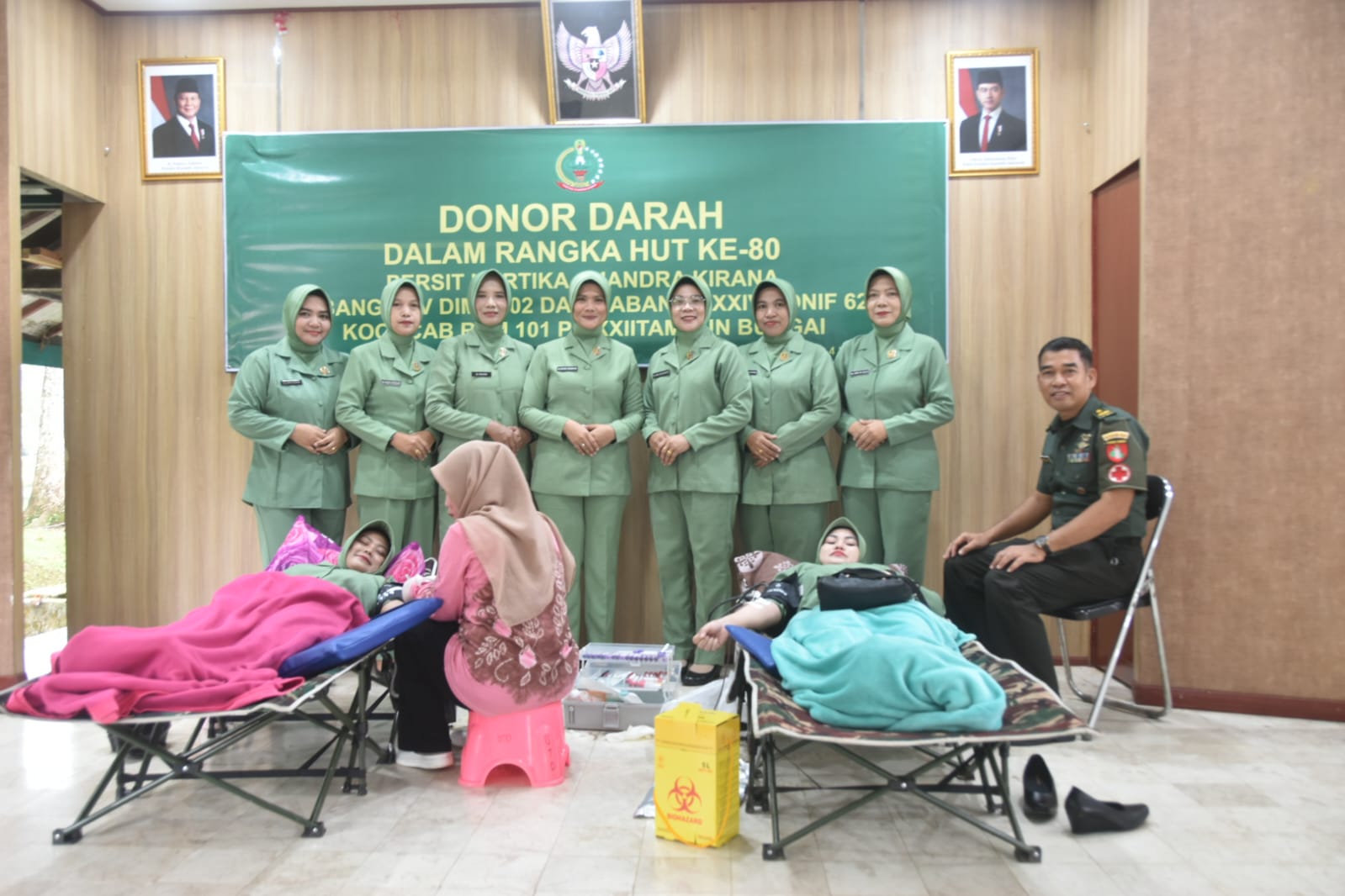 Ketua Persit Kartika Chandra Kirana Cabang XXV Kodim 1002, Ny. Hapsari O.P. Siregar, menyampaikan bahwa kegiatan donor darah ini tidak hanya menjadi rangkaian peringatan HUT ke-80 Persit, tetapi juga sebagai sarana mempererat silaturahmi serta menumbuhkan empati dan kepedulian sosial.