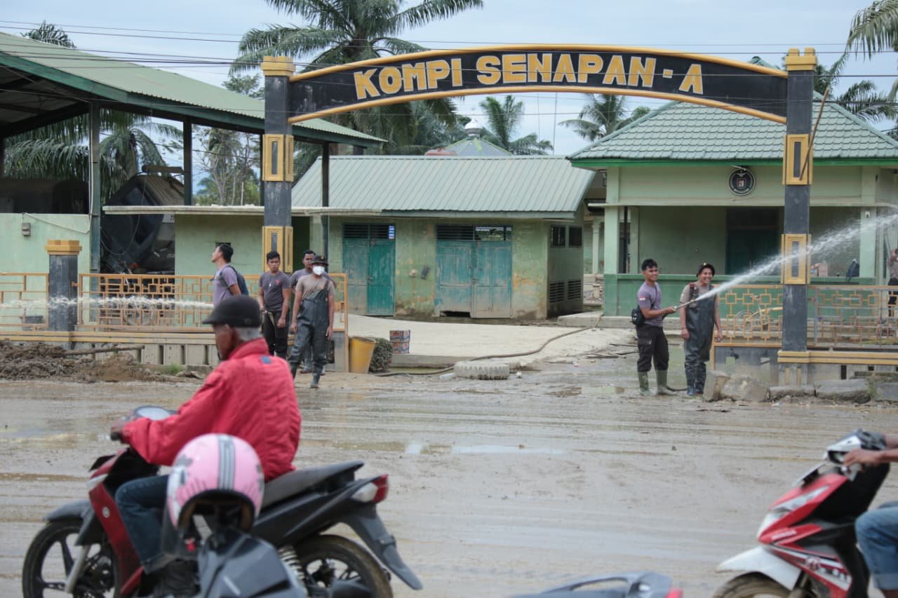 Patrolihukum.net // – 26 Desember 2026, Musibah banjir yang melanda Aceh Tamiang Genap satu bulan. Kompi Senapan A Yonif 111 / Karma Bakti, Aceh Tamiang, masih terendam air sisa banjir.