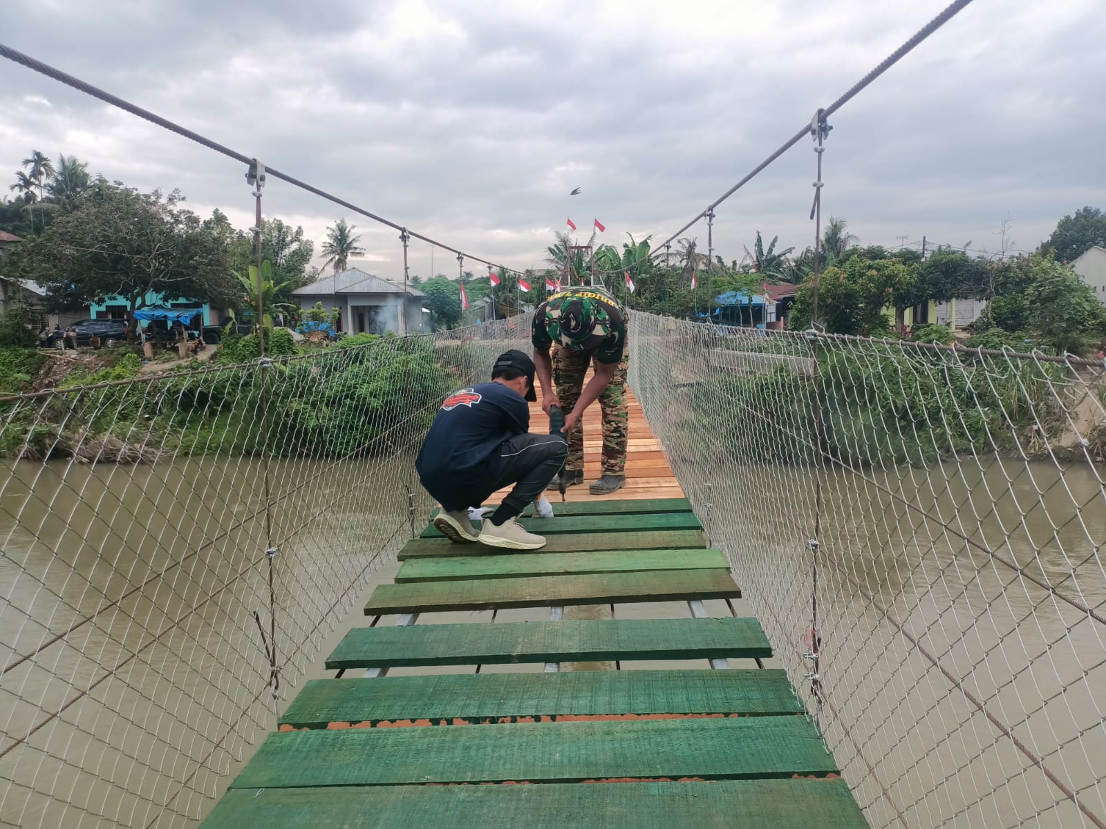 Renovasi Jembatan Gantung Garuda menjadi bukti komitmen TNI dalam mendukung pembangunan daerah dan meningkatkan kesejahteraan rakyat. TNI akan terus hadir dan bersinergi dengan pemerintah daerah serta seluruh komponen bangsa dalam mengatasi berbagai kesulitan masyarakat di wilayah. (Puspen TNI)