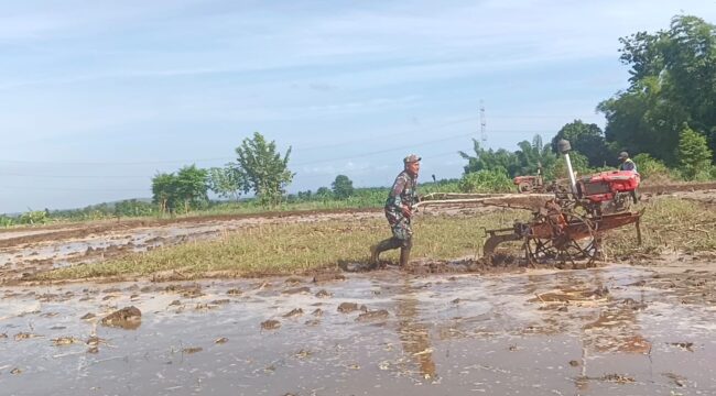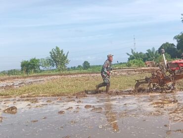 Mendampingi Pengolahan Lahan Pertanian, Koramil Banyuanyar Sukseskan Gerakkan Antisipasi Darurat Pangan Nasional