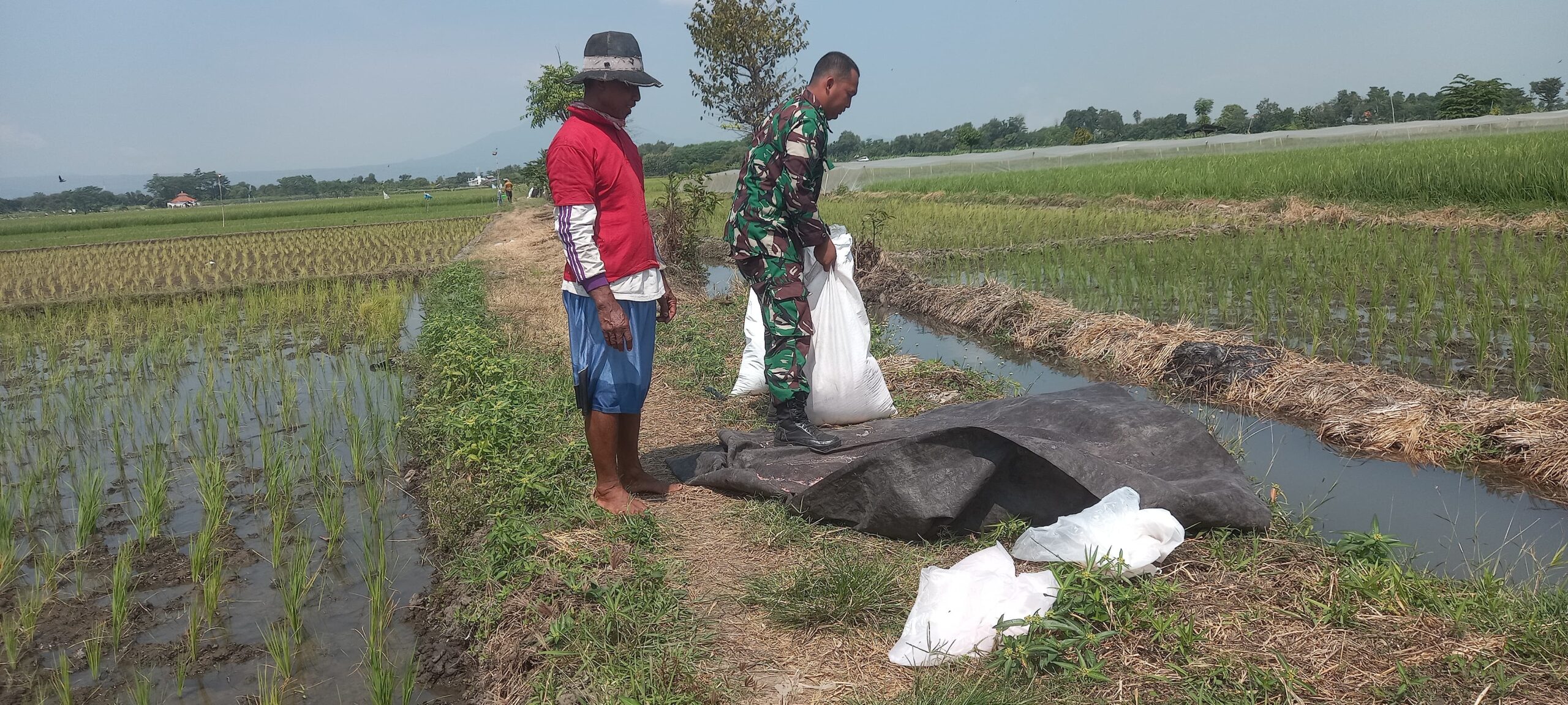 Bertempat di area persawahan milik warga setempat, anggota Koramil yang dipimpin oleh Serma Erwan Tri melaksanakan patroli wilayah sekaligus komunikasi sosial dengan melakukan pendampingan langsung kepada para petani yang tengah memasuki tahap pemupukan tanaman padi.